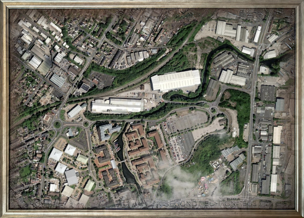 The Round Oak Iron and Steel Works was one of the Black Country’s most important industrial sites, dominating Brierley Hill from 1857 for over a century. This carved wooden map captures the historic layout of the furnaces, railways, canals, and mills that powered Britain’s industrial expansion. A detailed heritage artwork for historians, engineers, and lovers of industrial history.
